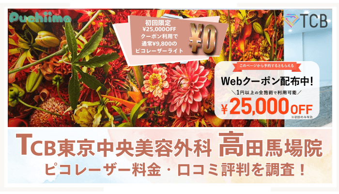 TCB東京中央美容外科高田馬場院のピコレーザーの料金や口コミ評判について詳しく調査しました。ピコトーニング、フラクショナル、スポットの違いやメリット、ライトやスタンダードの特徴、話題のシミ取り放題プランや、その他各コースの詳細についても解説しています。全国の取扱店舗の情報や、お得に施術を受けられるクーポン情報や各種助成もご紹介しているので、施術を検討している方はぜひ参考にしてみてください。 -