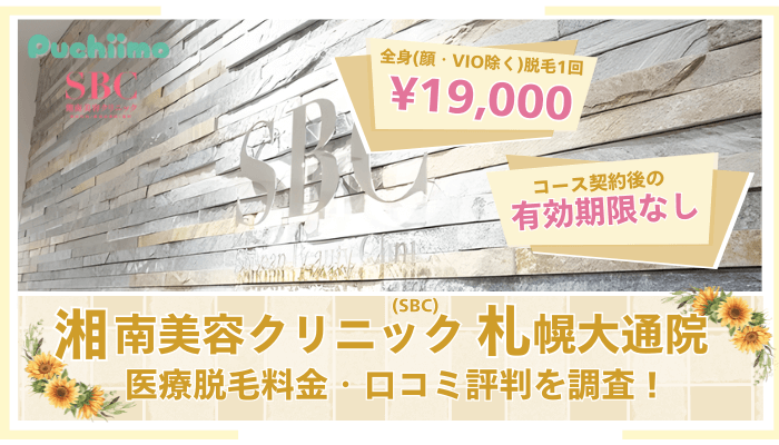 湘南美容クリニック(SBC)札幌大通院の医療脱毛について、プチーモが口コミを独自に調査しました。