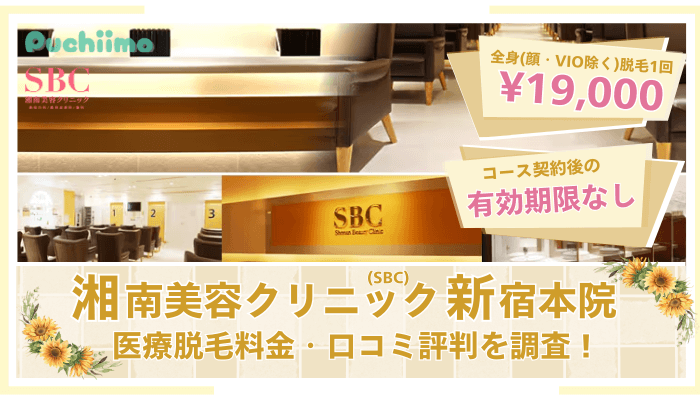 湘南美容クリニック(SBC)新宿本院の医療脱毛について、プチーモ編集部が口コミを独自に調査しました。