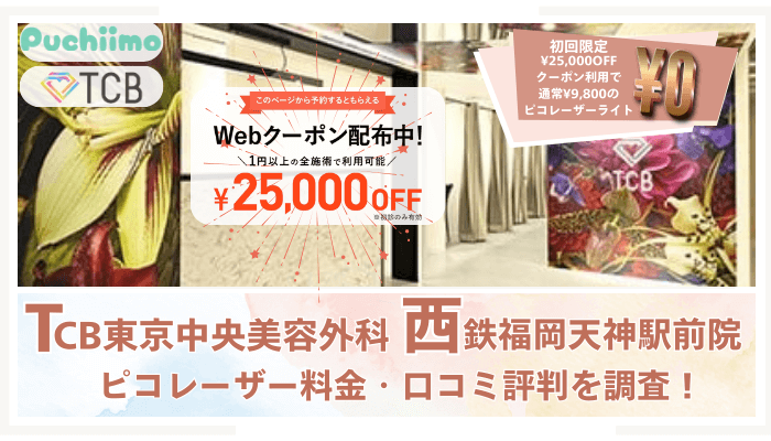 TCB東京中央美容外科 西鉄福岡天神駅前院のピコレーザー料金・口コミ評判を調査!シミ取り無料の詳細や5つの魅力