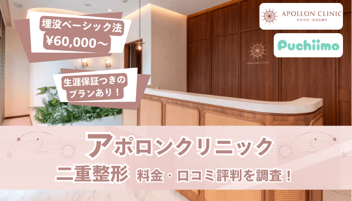 プチーモでは、アポロンクリニックで受けられる二重埋没法・切開法について、公式サイトの情報をもとに詳しく調査しました。