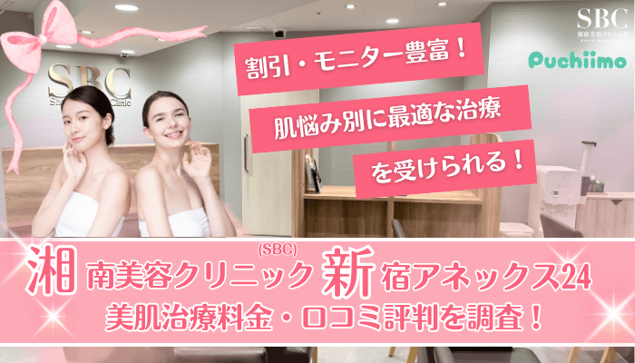 当記事では、湘南美容クリニック(SBC)新宿アネックス24で受けられる美肌治療の種類・料金・口コミ評判・おすすめポイントをまとめました。