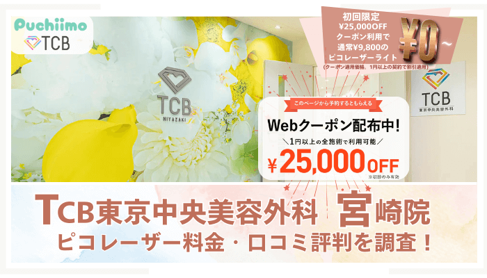 TCB東京中央美容外科 宮崎院のピコレーザー料金・口コミ評判を調査!シミ取り無料の詳細や5つの魅力