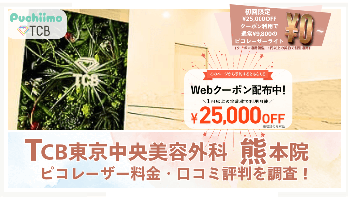 TCB東京中央美容外科 熊本院のピコレーザー料金・口コミ評判を調査!シミ取り無料の詳細や5つの魅力