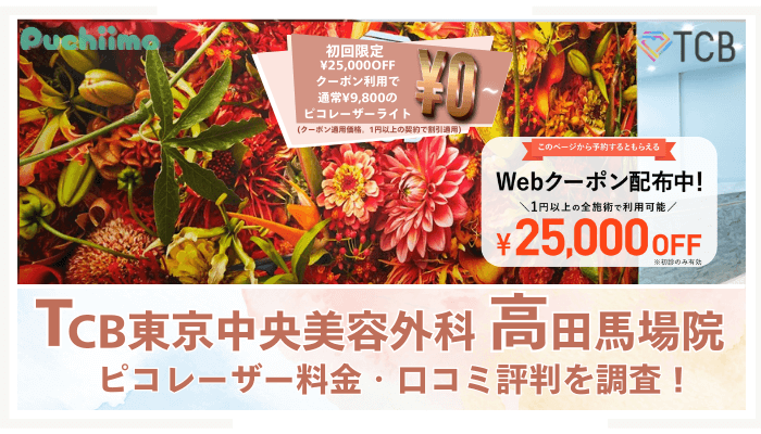 TCB東京中央美容外科高田馬場院のピコレーザーの料金や口コミ評判について詳しく調査しました。ピコトーニング、フラクショナル、スポットの違いやメリット、ライトやスタンダードの特徴、話題のシミ取り放題プランや、その他各コースの詳細についても解説しています。全国の取扱店舗の情報や、お得に施術を受けられるクーポン情報や各種助成もご紹介しているので、施術を検討している方はぜひ参考にしてみてください。 -
