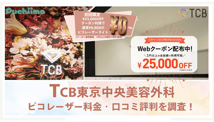 TCB東京中央美容外科のピコレーザー料金や口コミ評判を調査しました。シミ取りを無料で受けられるクーポン詳細や、ピコトーニング・フラクショナル・スポットの違い、シミ取り効果は高いのか、おすすめできる魅力を紹介しています。取扱店舗一覧やライトやスタンダードなどプランごとの違い、ピコレーザーを受ける際に利用できるキャンペーン情報もわかるので、ぜひ参考にしてください。 -