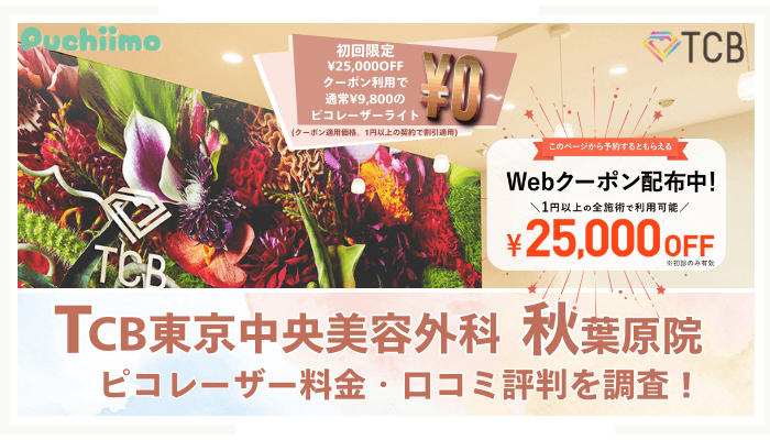 TCB東京中央美容外科秋葉原院のピコレーザー料金や口コミ評判を調査しました。ピコトーニング・フラクショナル・スポットの違いや5つのおすすめできる魅力を始め、ライトとスタンダード、シミ取り放題などプランごとの特徴、取扱店の詳細、お得なクーポン情報も紹介しています。良い面だけでなく、デメリットもわかるので、ぜひ参考にしてください。 -